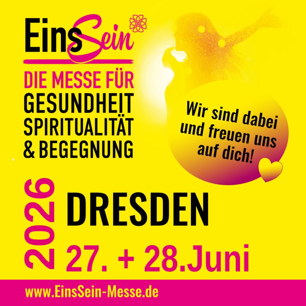 Die EinsSein Messe in Dresden findet in der Börse Dresden, Saal Hamburg & Via Mobile 7, am Messering 6 statt. Am 27. und 28.06.26 laden 60 Fachexperten von 10 – 18 Uhr zu Vorträgen, Workshops und geselligem Stöbern in den Kaufangeboten ein. Ein Konzert ist inklusive. Inhaltlich geht es um die Themen: Gesundheit & Prävention, Naturheilverfahren, Energetische Heilweisen, Bewusste Lebensgestaltung, Spiritualität & Begegnung. Der Eintritt kostet für 1 Tag 9 EUR, für beide Tage 15 EUR, Kinder & Jugendliche bis 15 Jahre sind in Begleitung Erwachsener frei.